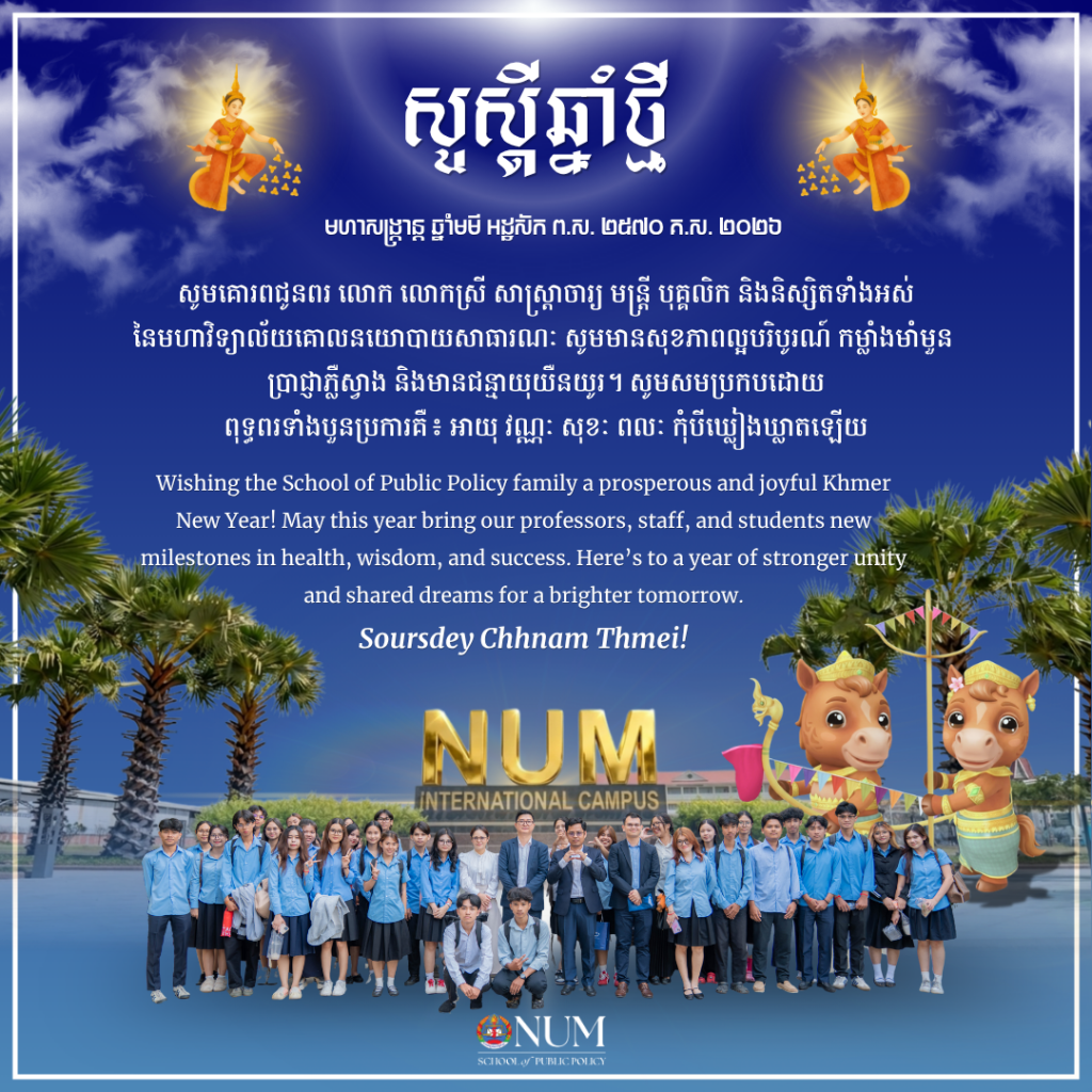 The event was led by Dr. Prof. Hor Peng, Rector of the National University of Management, and coordinated by Asso. Prof. Nop Kanharith, Director of the School of Public Policy.